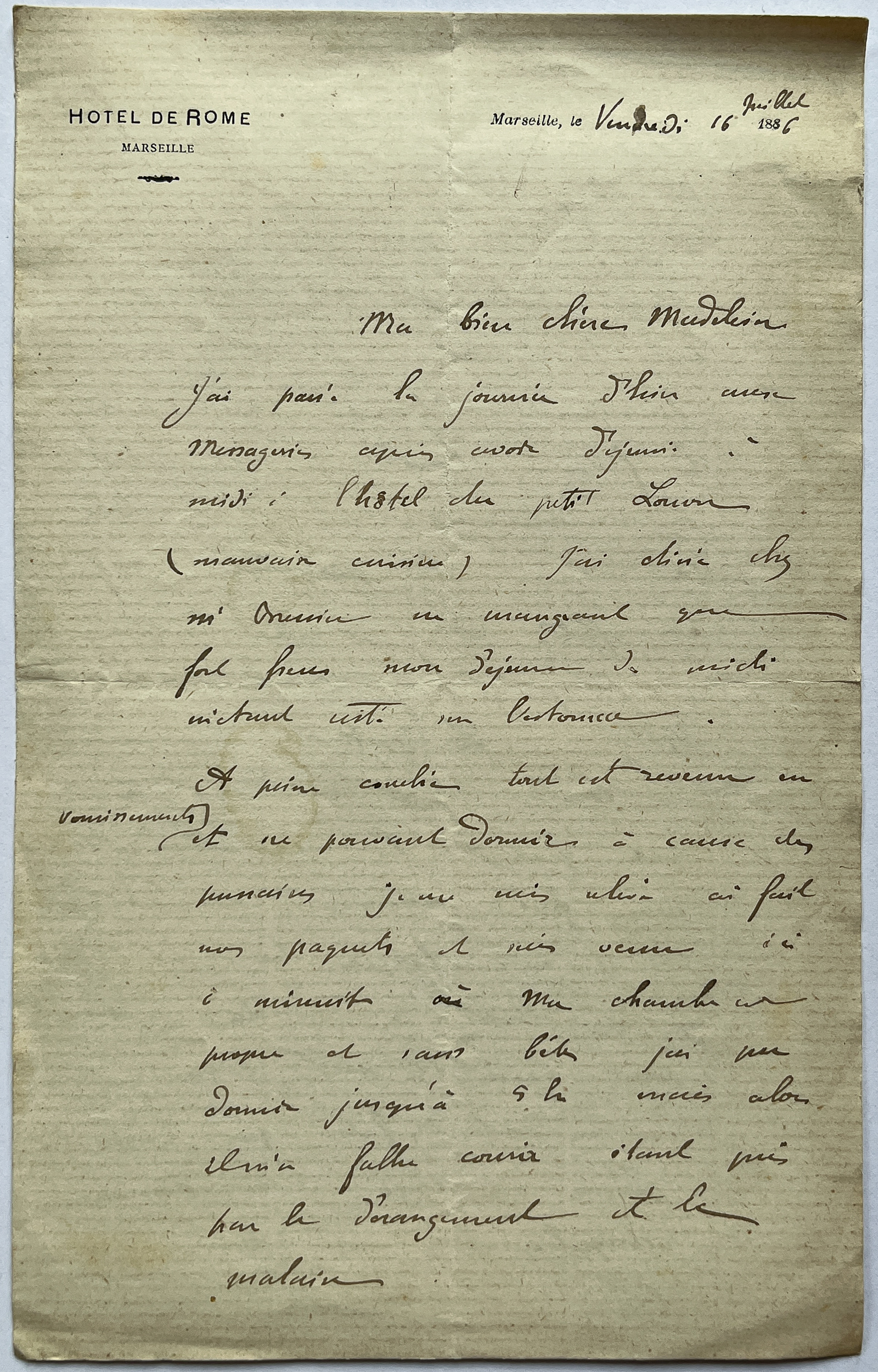 Albert à Madeleine (16 juillet 1886)
