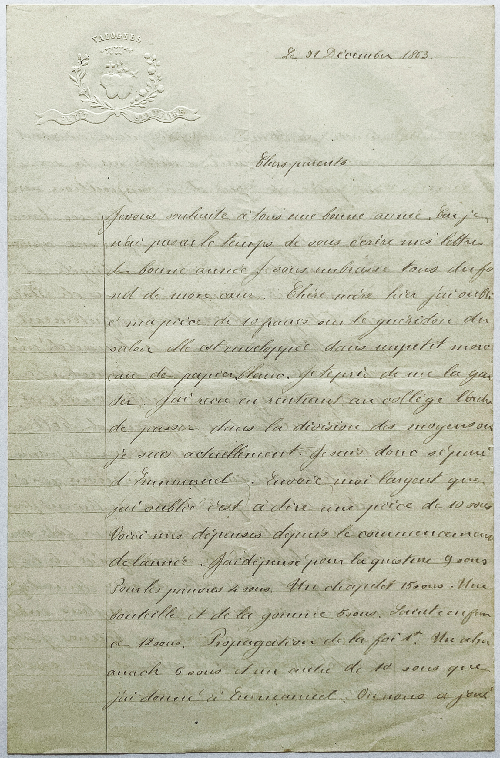 Albert à Mathilde (31 décembre 1863)