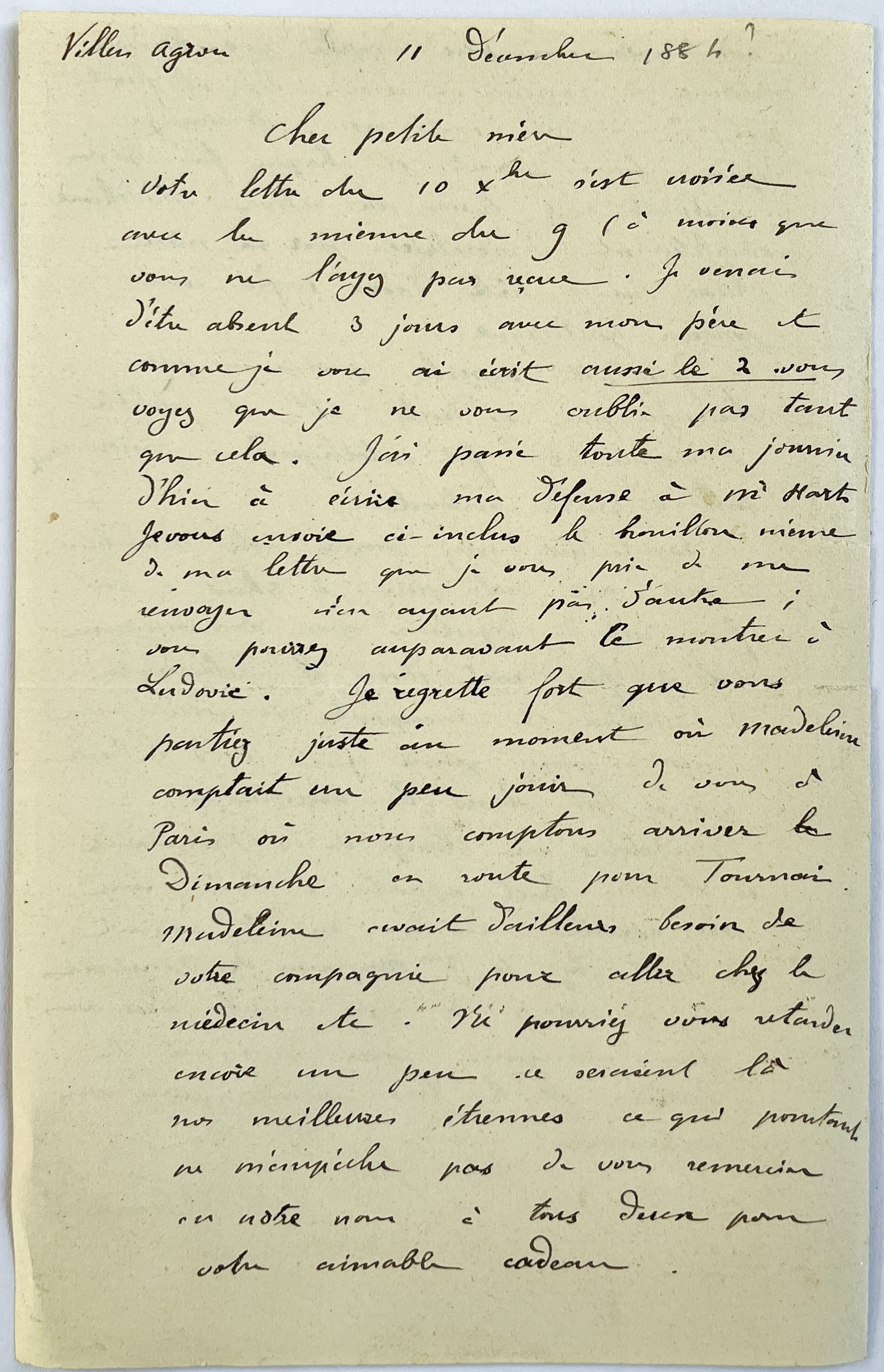 Albert à Mathilde (11 décembre 1884)