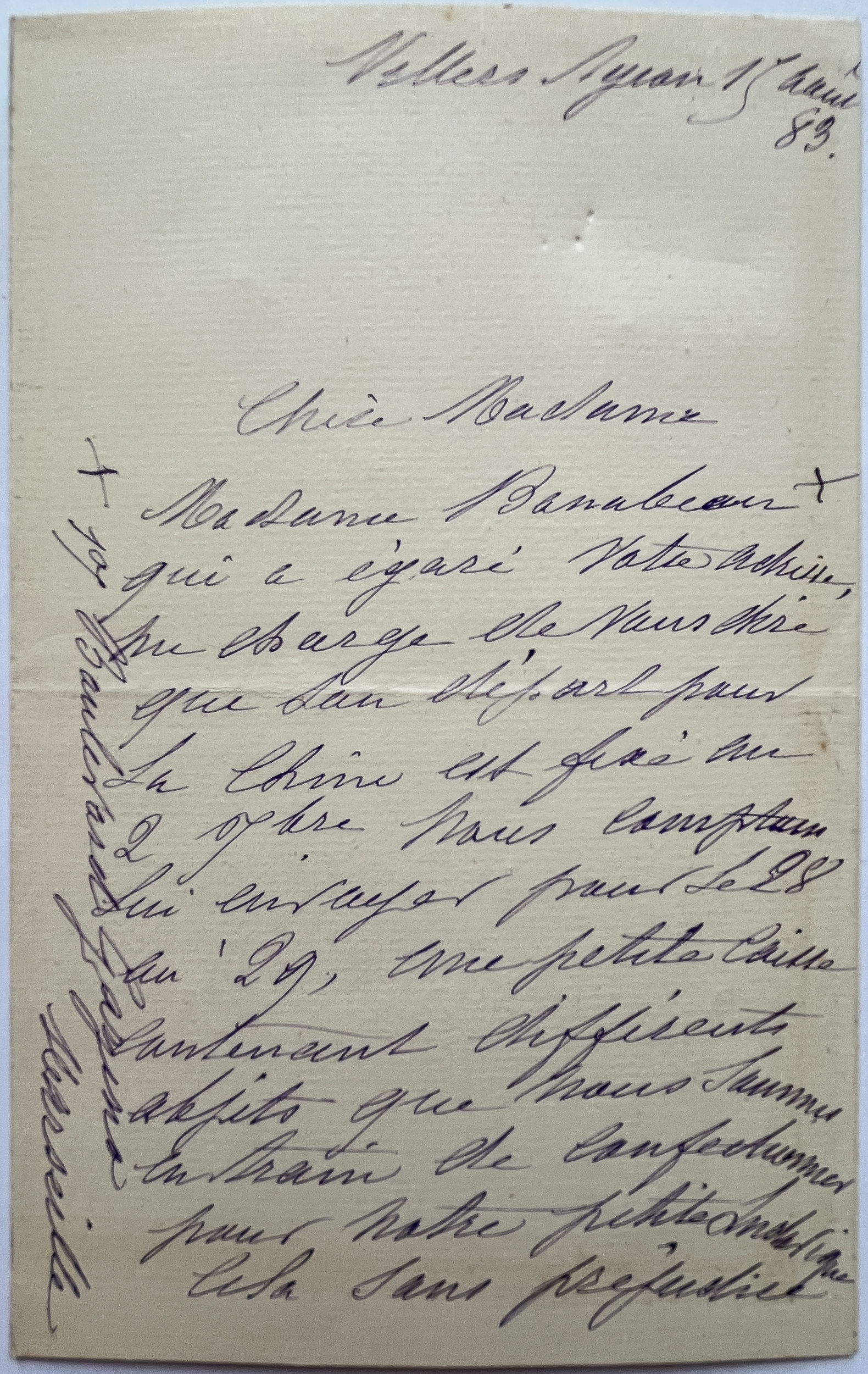 Mme de La Vaulx à Mathilde (17 août 1883)