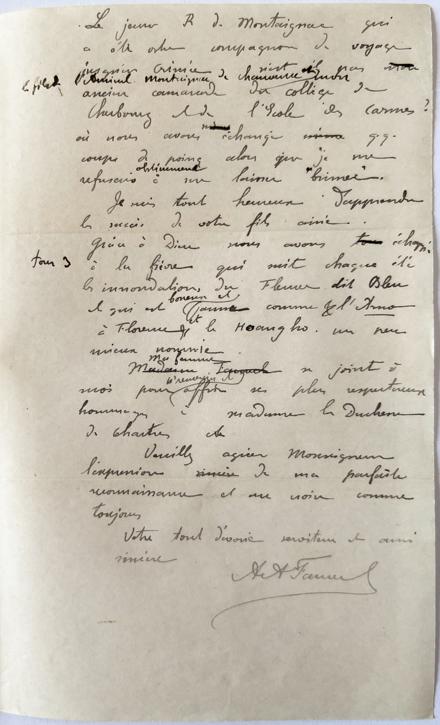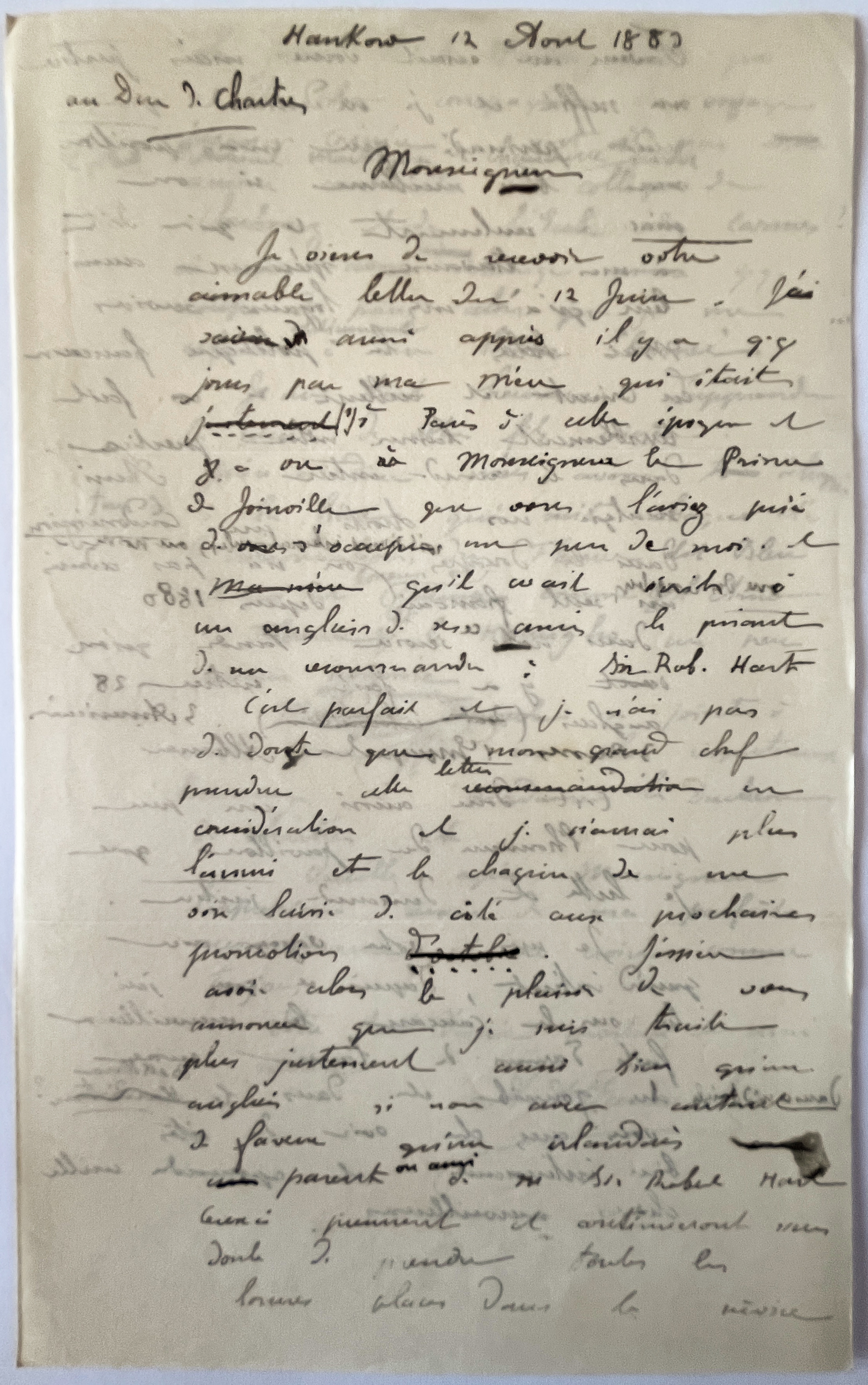 Une lettre (recopiée) au Duc de Chartres qui permet notamment de mieux comprendre les "brimades" dont Albert fait l'objet au sein des Douanes Chinoises.