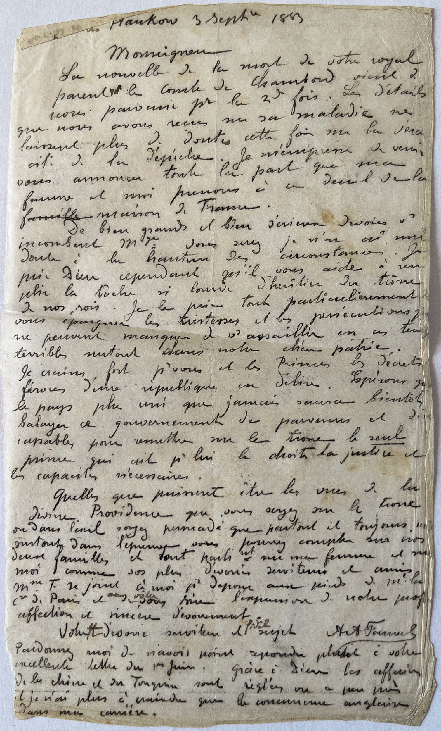 lettre (recopiée) d'Albert dans laquelle il exprime notamment ses convictions royalistes.