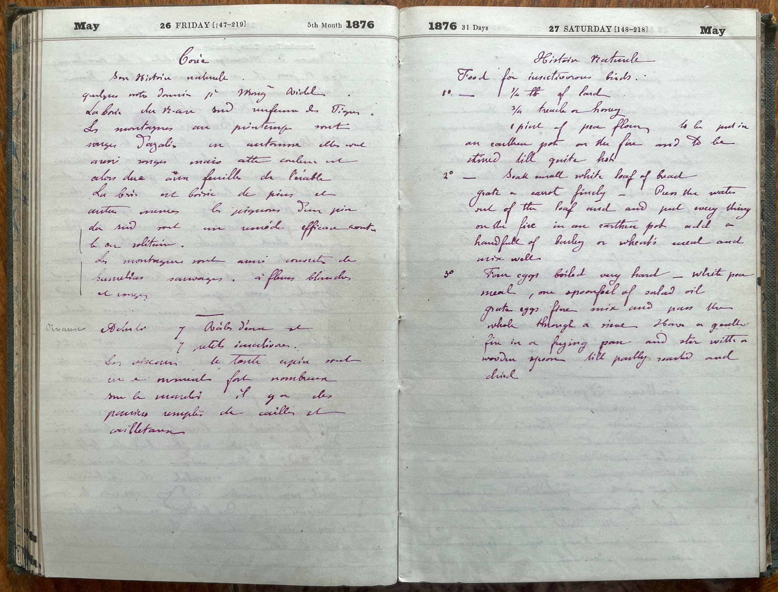 De nombreuses descriptions de plantes, de roches... et le 19 mai, on apprend qu'Albert fait dessiner 70 oiseaux