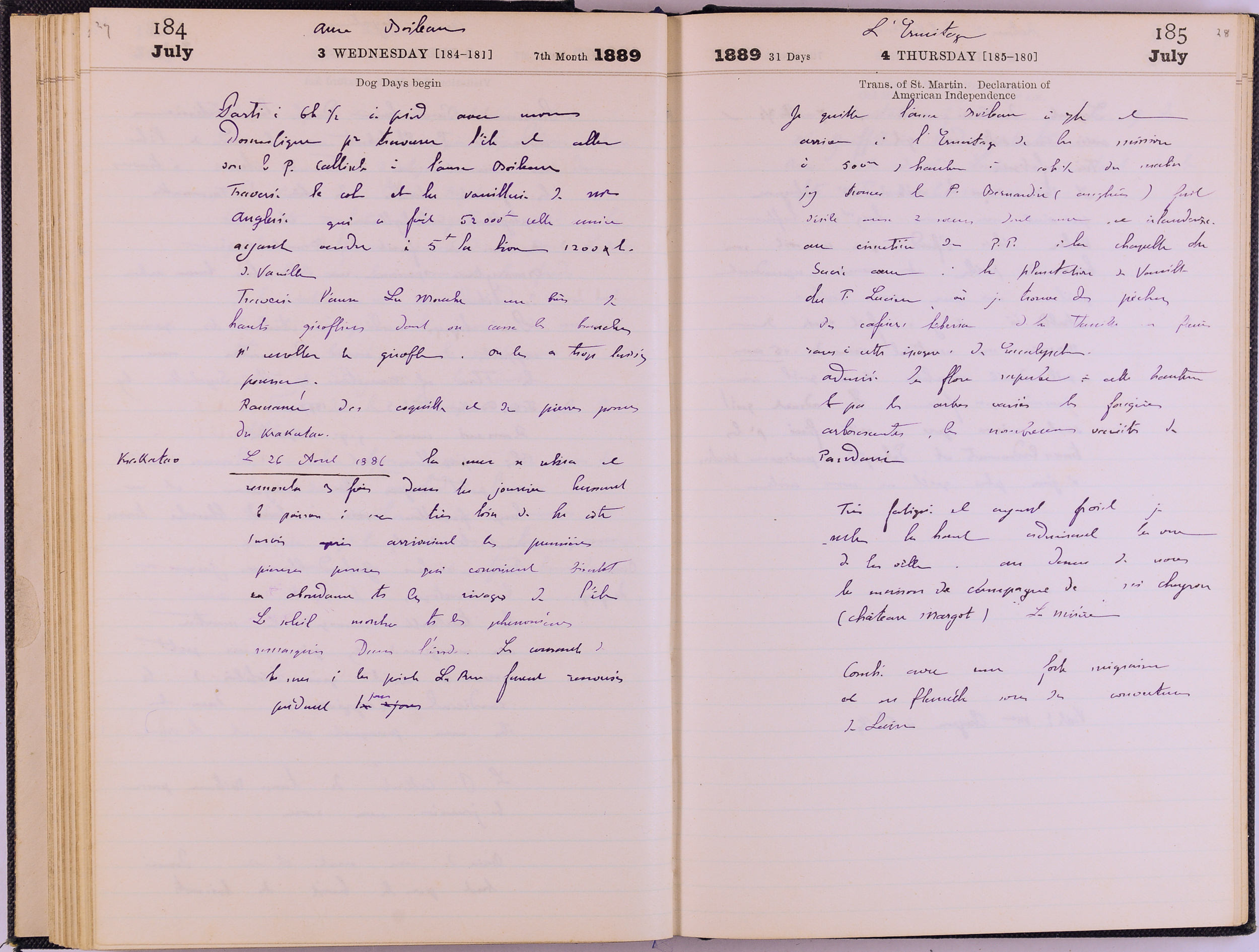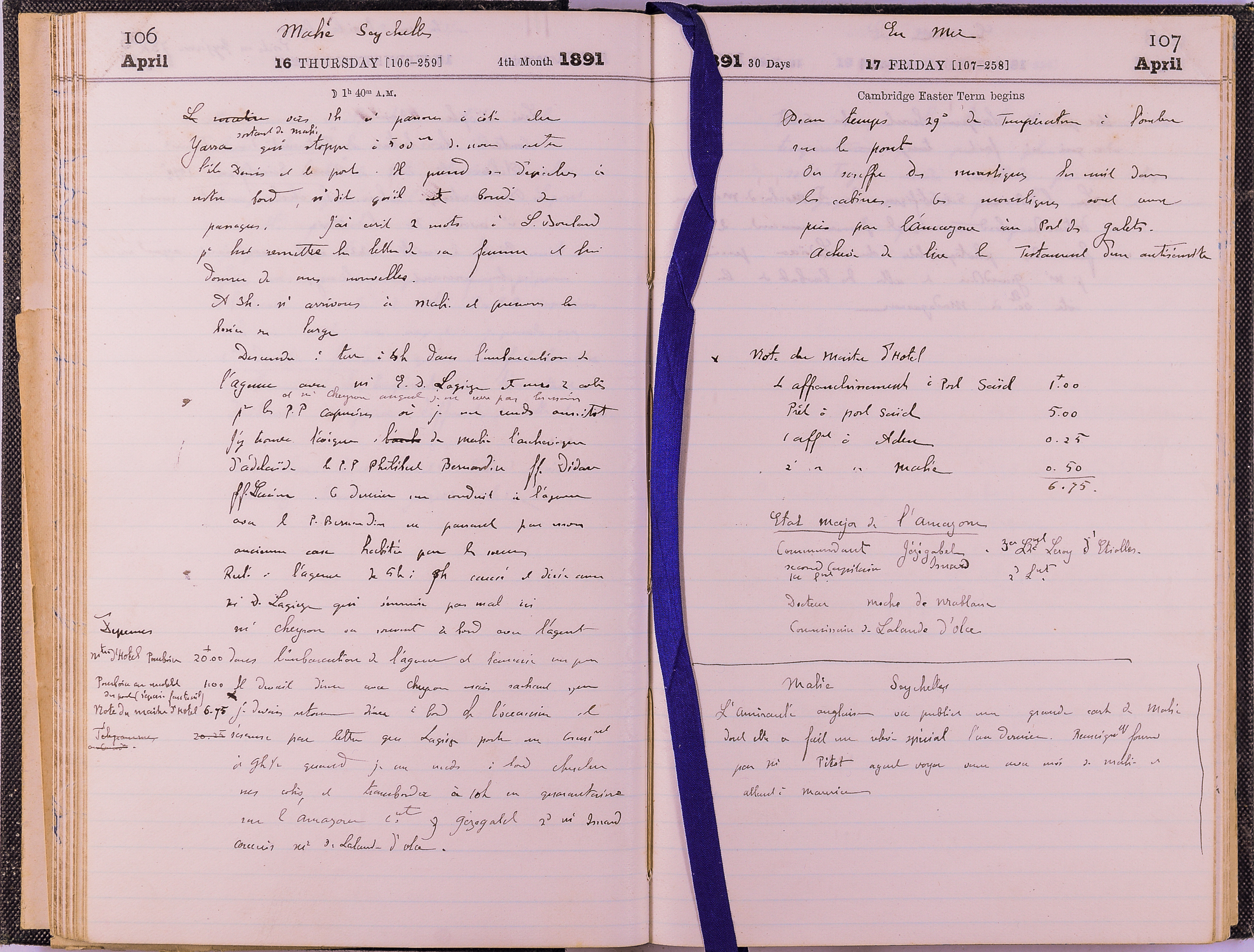 Iles Seychelles - extraits agendas Albert (1889, 1891, 1904)