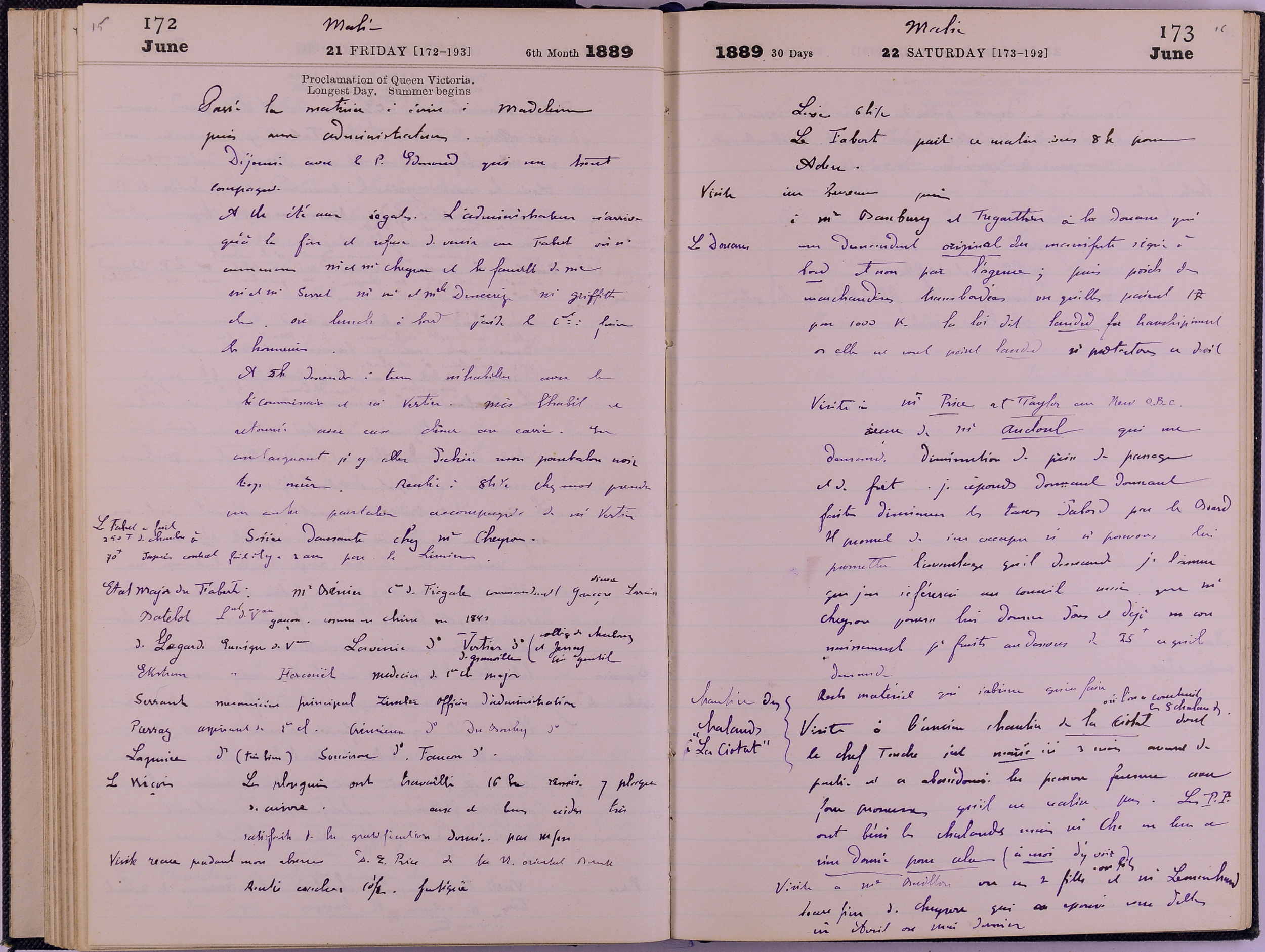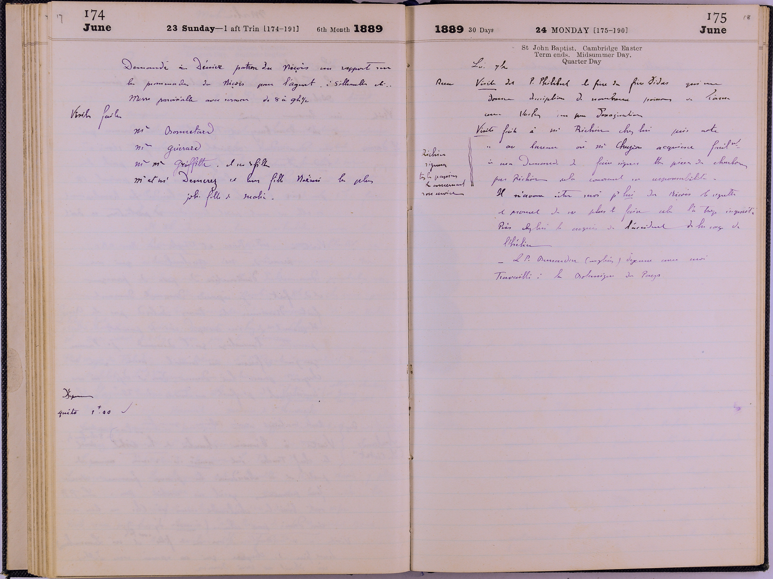 Voici ce qu'il a noté dans ses agendas à l'occasion de ses divers passages.