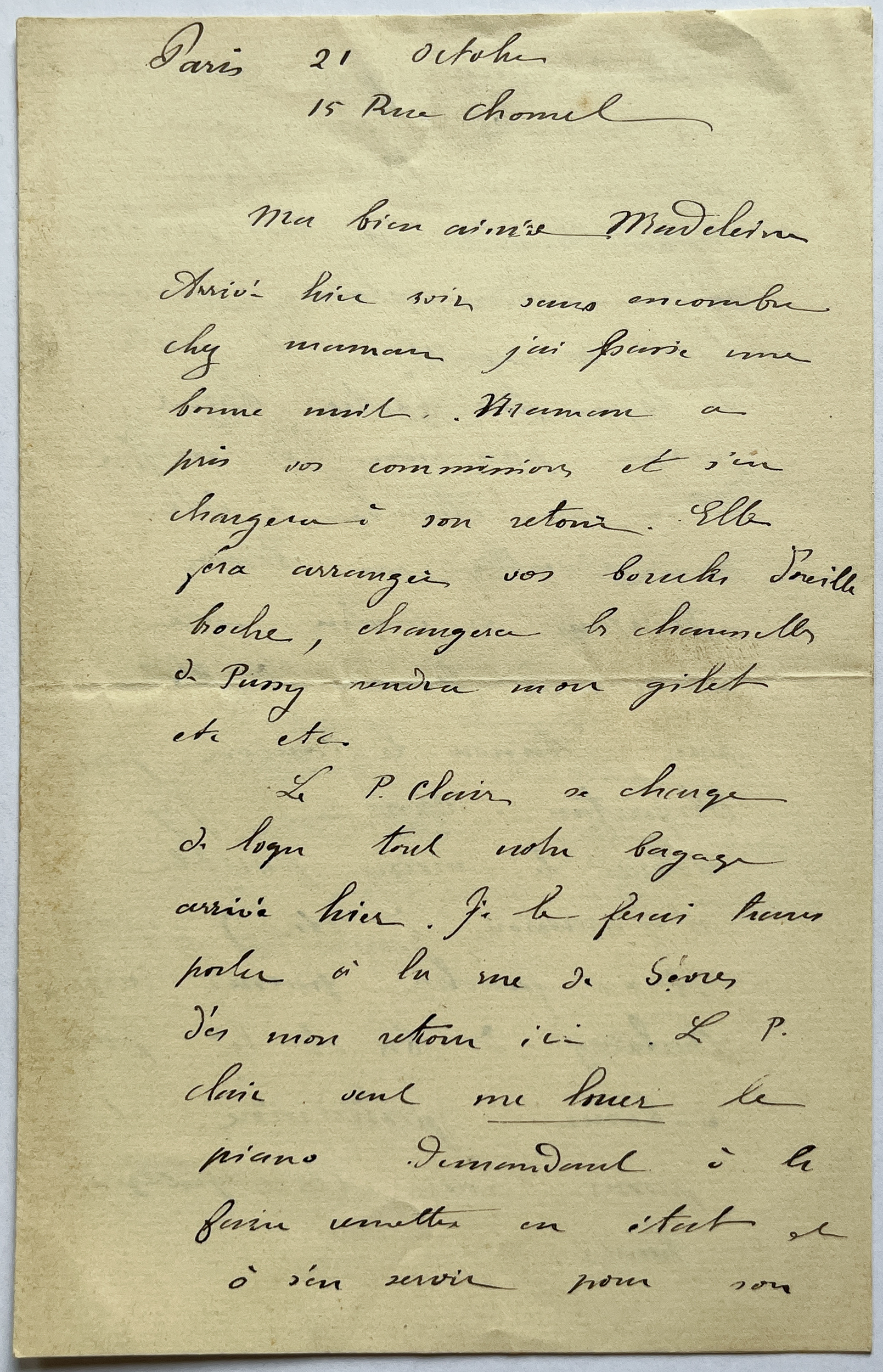 Albert à Madeleine (21 octobre 1884)