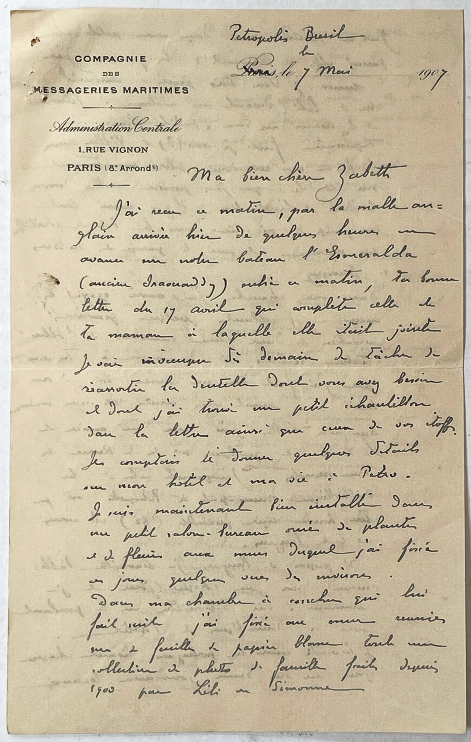 Albert à Elisabeth (7 mai 1907)