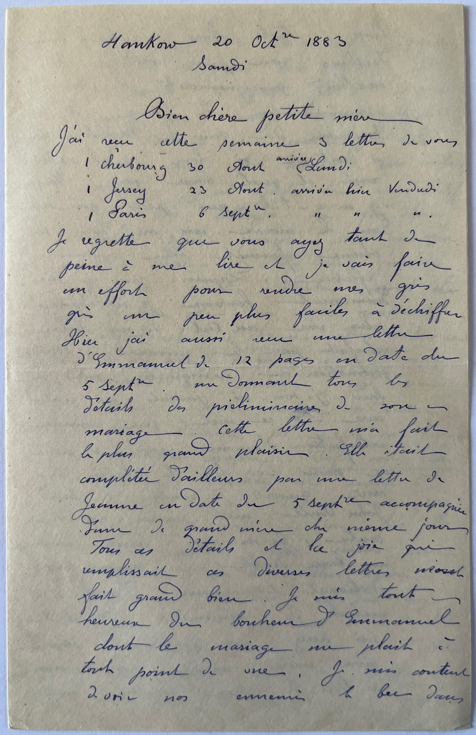 Albert à Mathilde (20 octobre 1883)