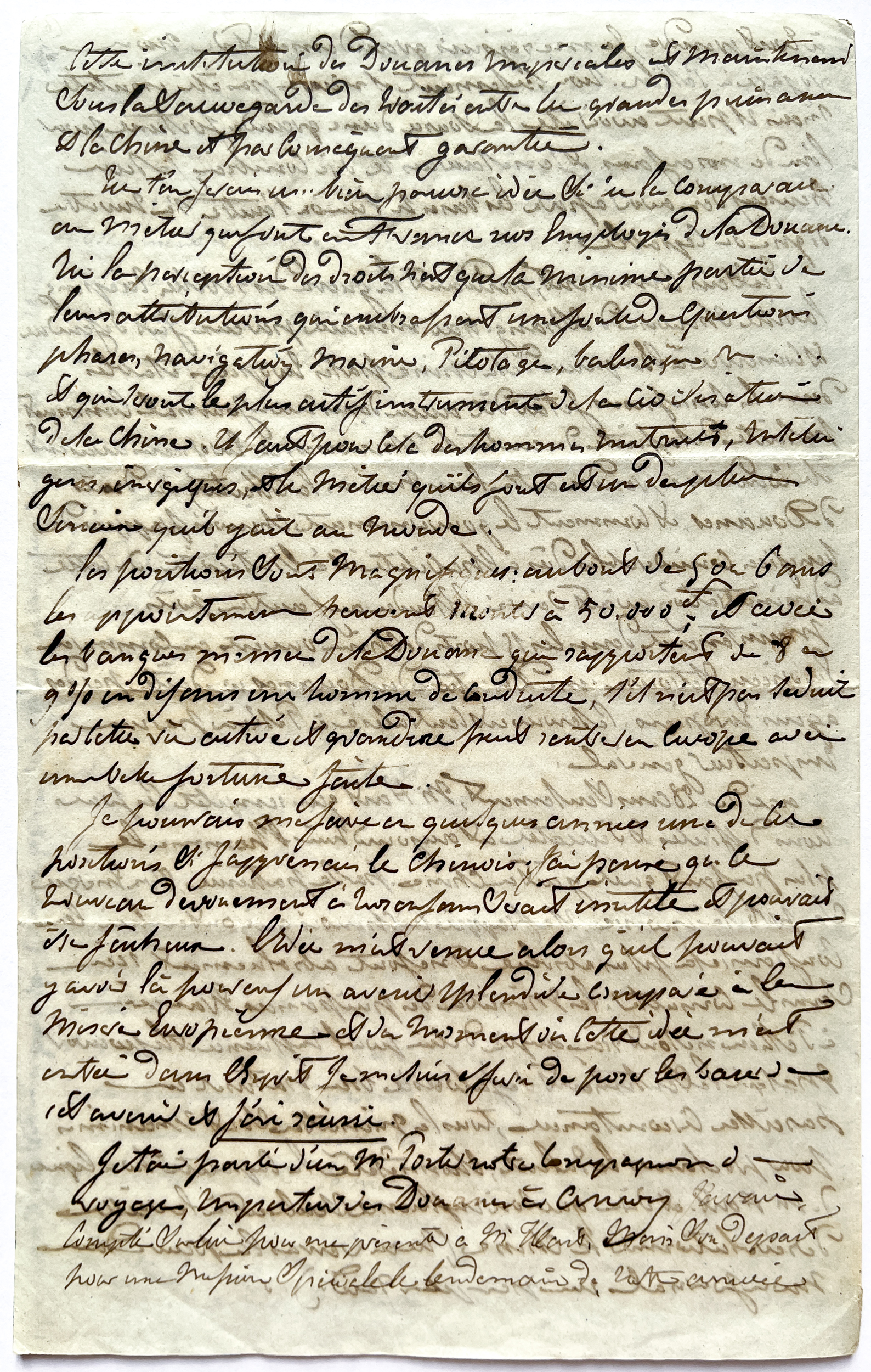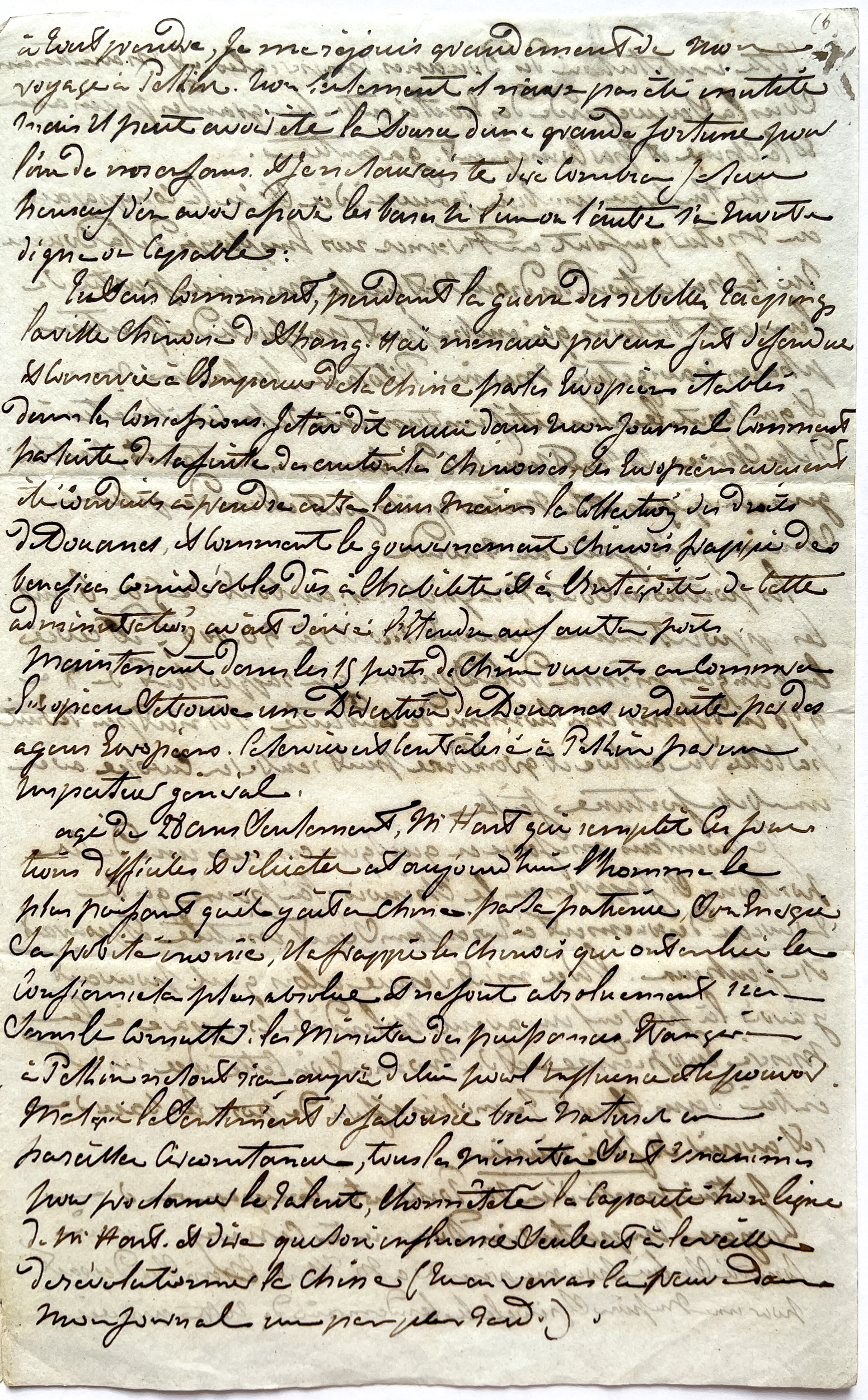 Cette lettre, dont il manque la première page, relate le déplacement à Pékin d'Auguste et son échange avec Sir Robert HART concernant l'avenir de son fils Albert (16 ans)