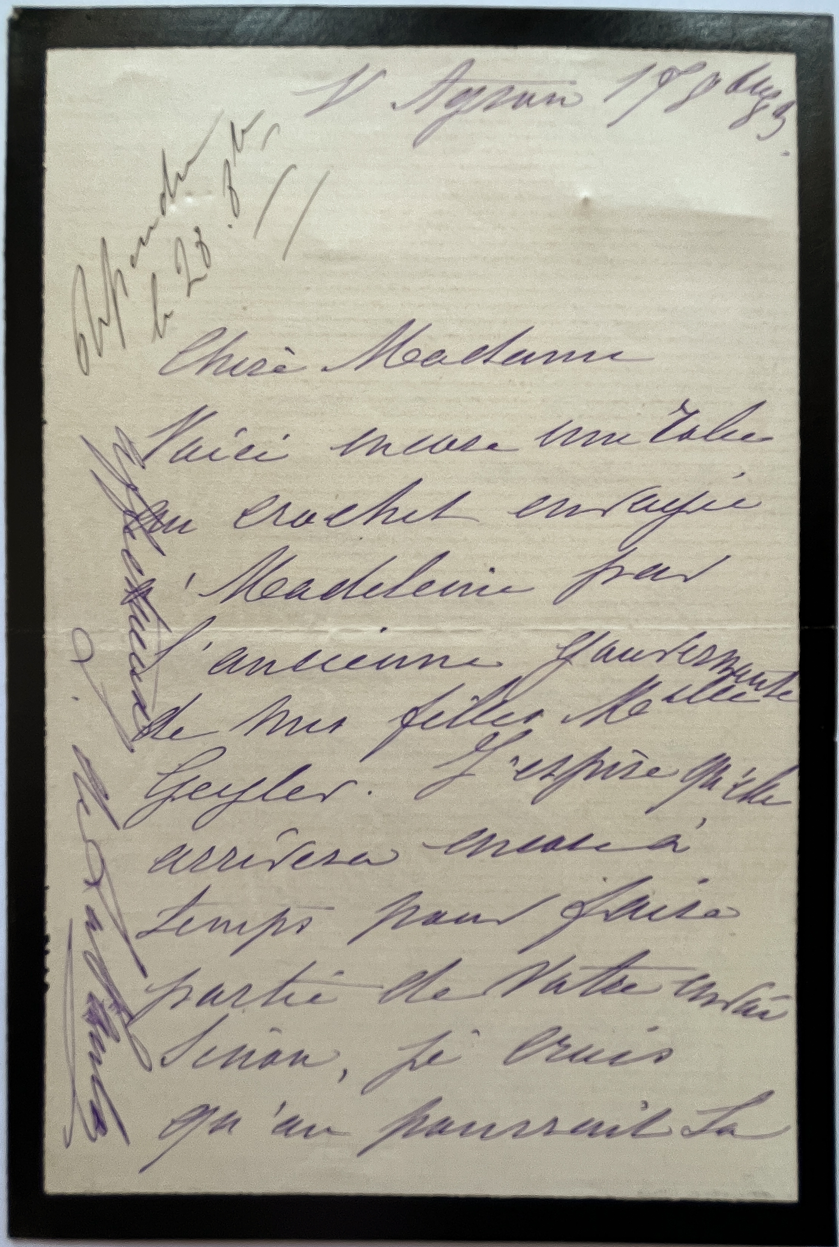 Mme de La Vaulx à Mathilde (19 août 1883)