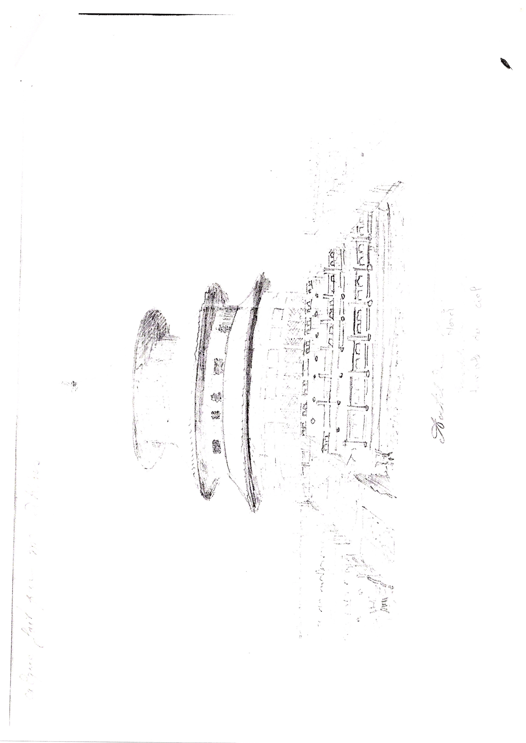A l’Ouest de de cet antique autel, sont des immenses mats rouges, souvent des mats de pavillons. Pour le moment, ils sont encastrés dans un fouillis immense et inextricable d’échafaudages formés de longs fagots de minces et longues branches encastrées bout à bout ; cela est entièrement peint en rouge. Je me creuse la tête à savoir à quoi cela peut servir. C’est peut être pour repeindre et revernir les grands mats de pavillon.