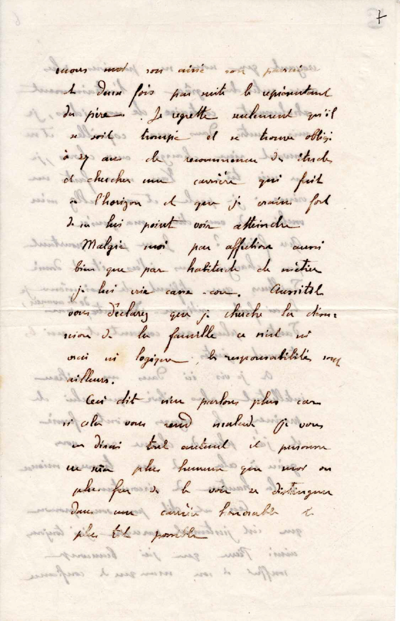 Ceci dit, n’en parlons plus car si cela vous rend malade, je vous en dirais tout autant et personne ne sera plus heureux que moi ou plus fier de le voir se distinguer dans une carrière honorable le plus tôt possible.