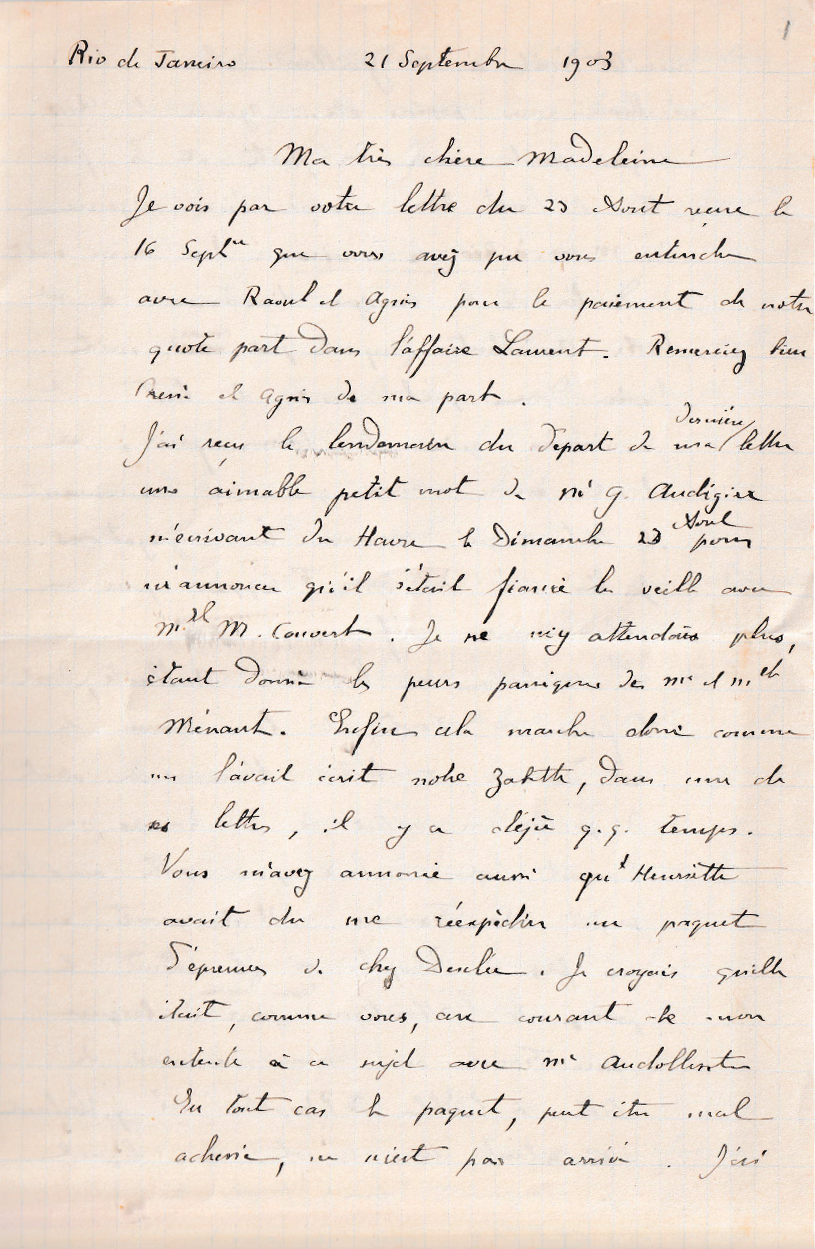 Albert à Madeleine (21 septembre 1903)