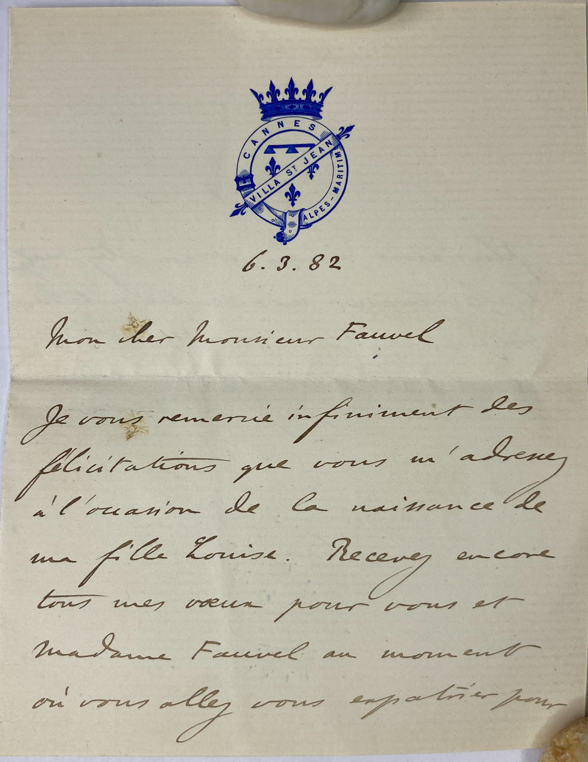 Louis Philippe d'Orléans à Albert (6 mars 1882)