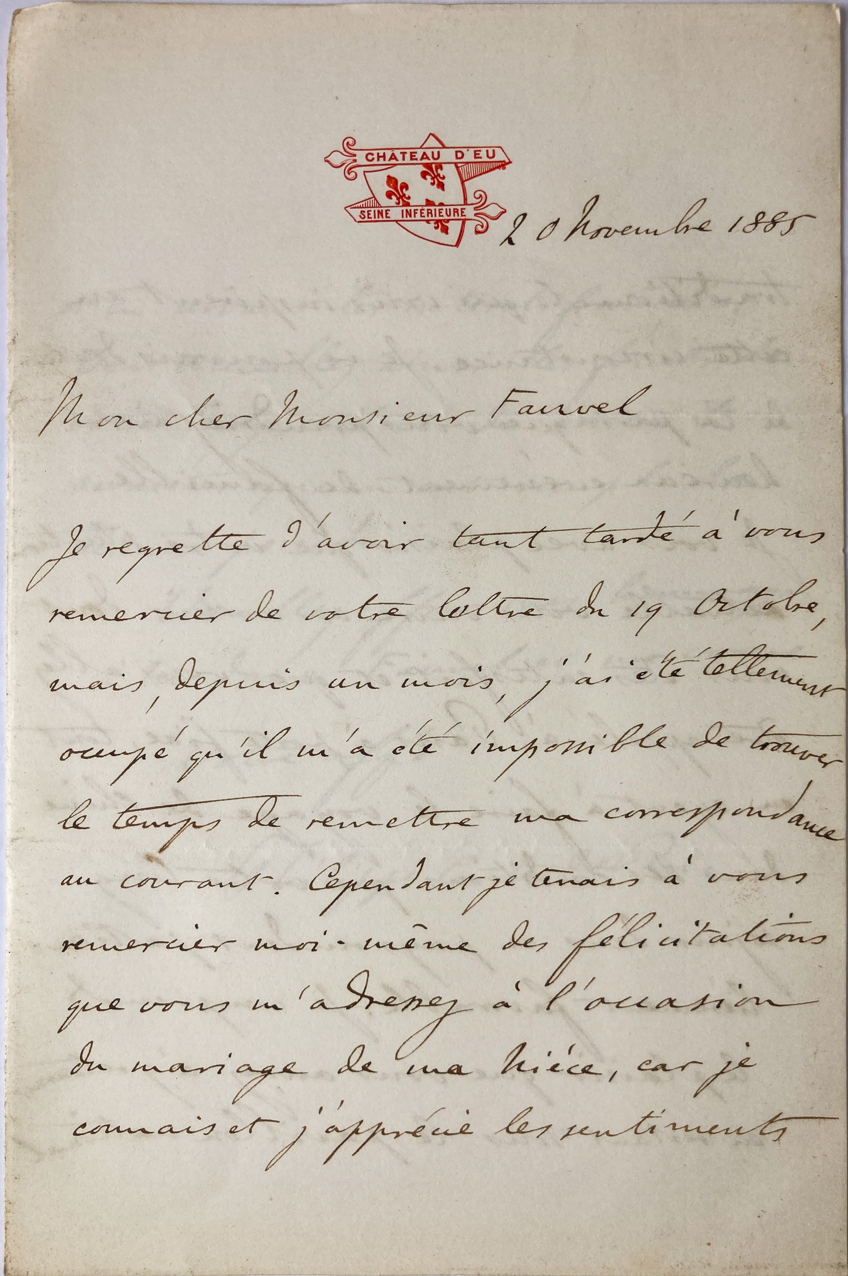 Louis Philippe d'Orléans à Albert (20 novembre 1885)