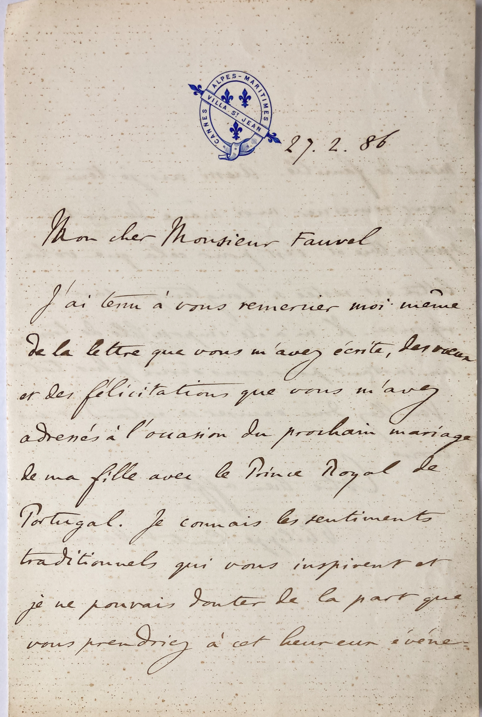 Louis Philippe d'Orléans à Albert (27 février 1886)