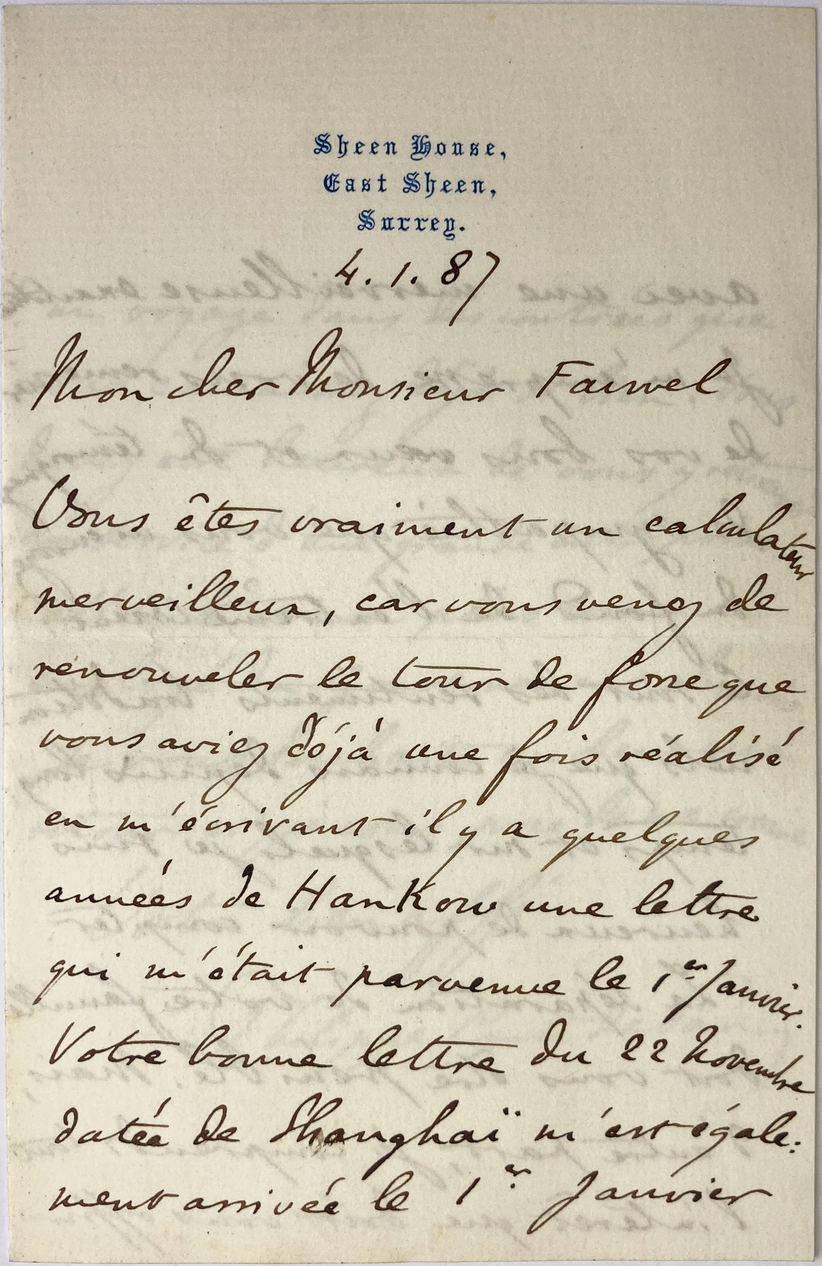 Louis Philippe d'Orléans à Albert (4 janvier 1887)