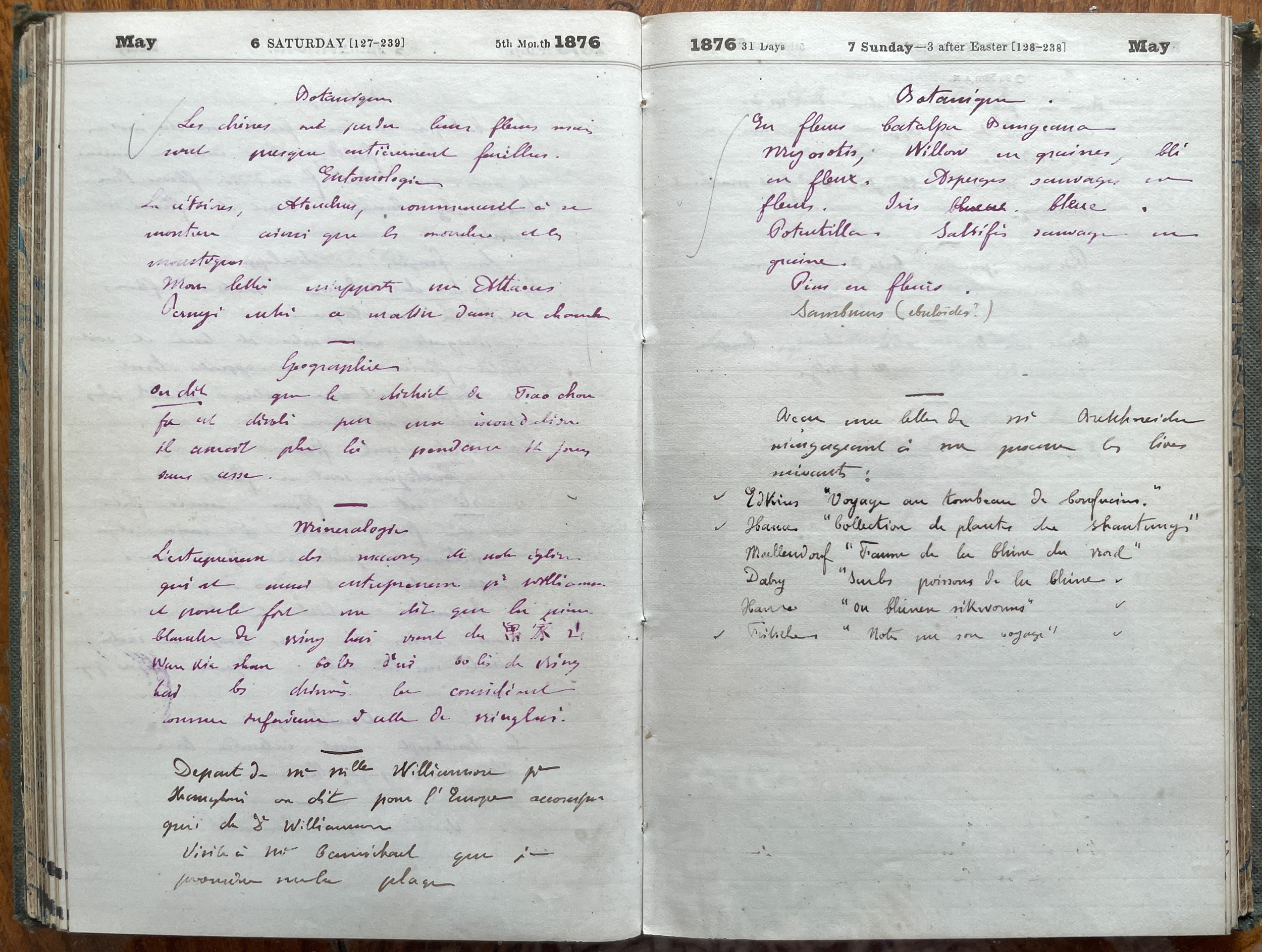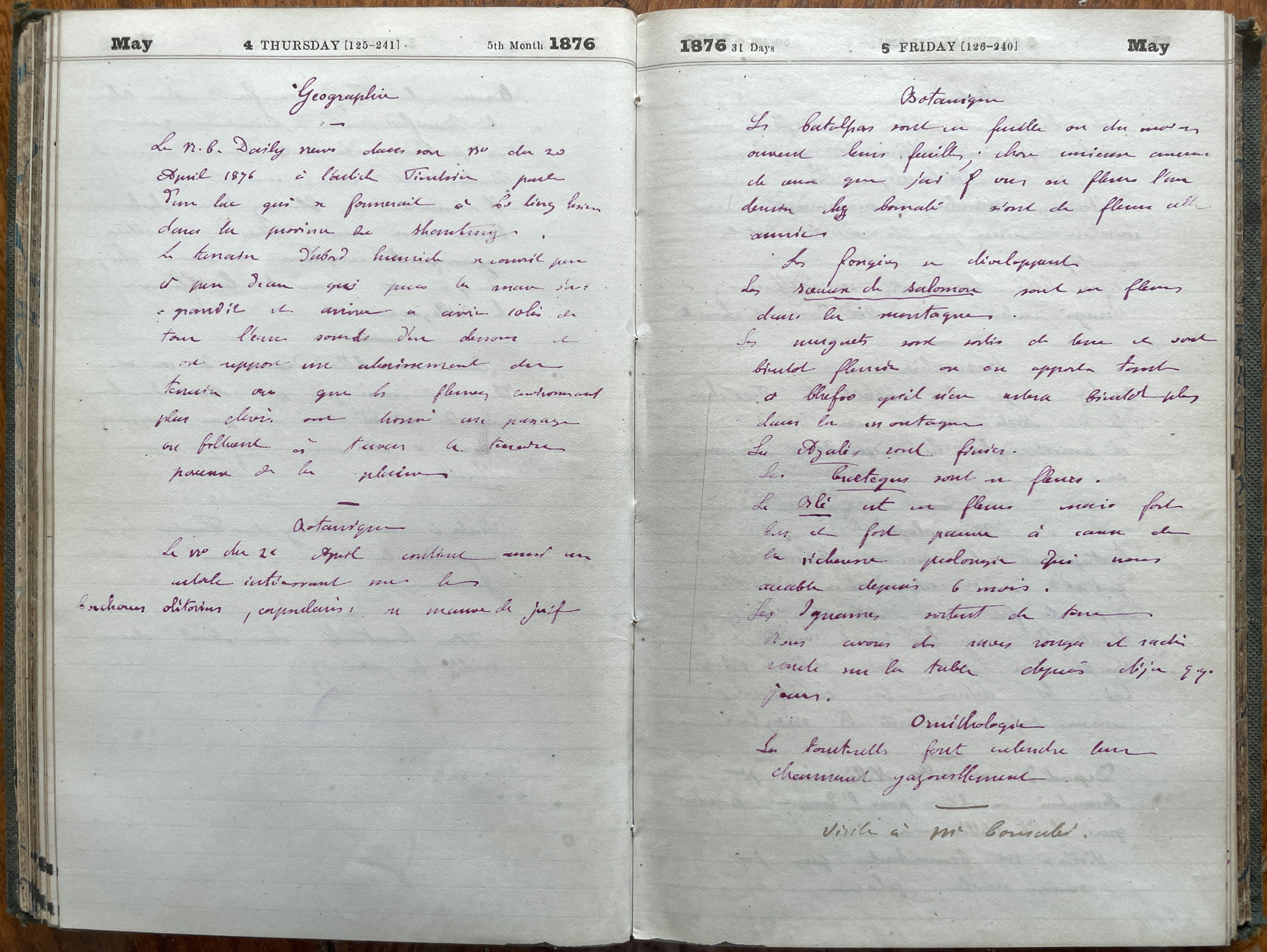 De nombreuses descriptions de plantes, de roches... et le 19 mai, on apprend qu'Albert fait dessiner 70 oiseaux