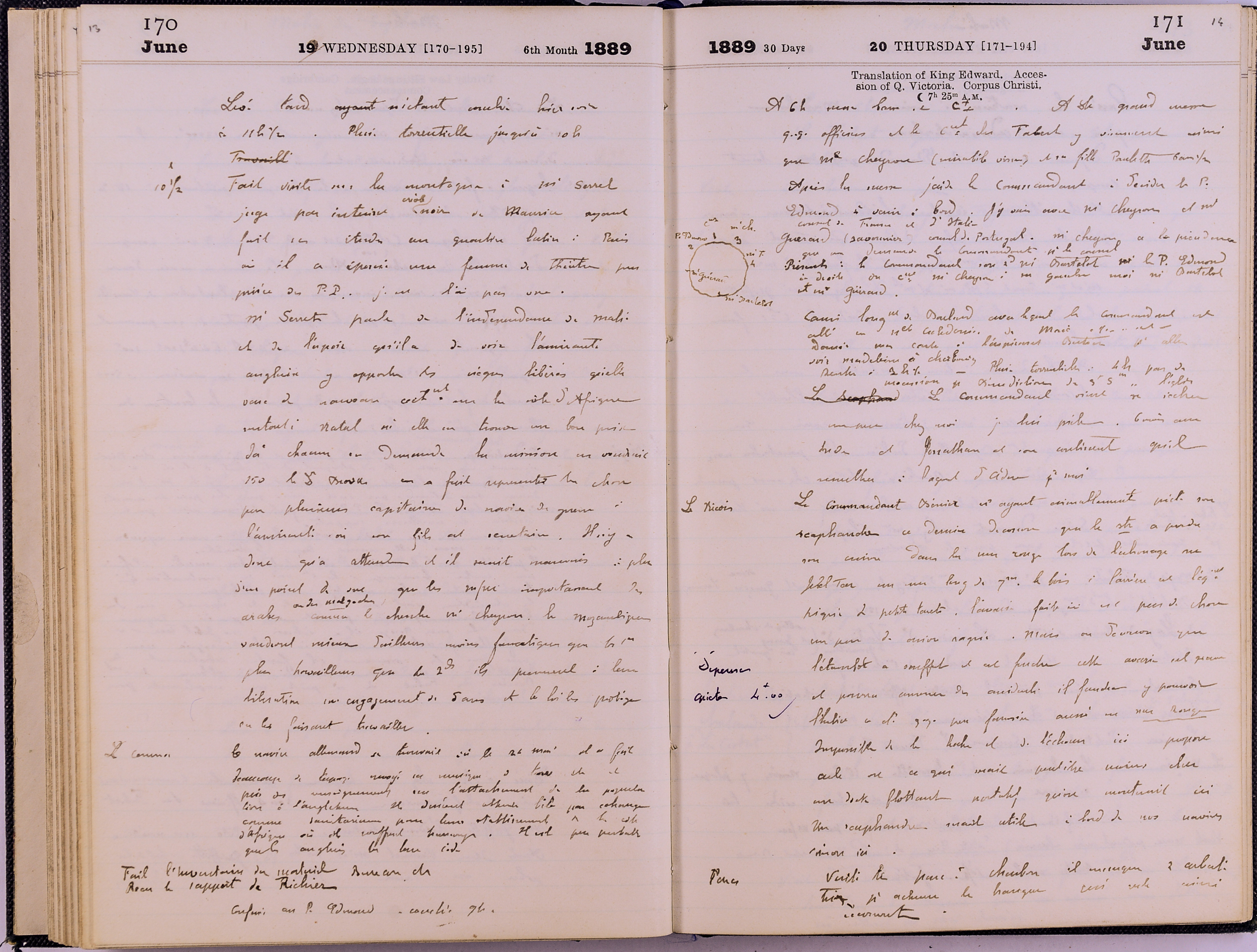 Voici ce qu'il a noté dans ses agendas à l'occasion de ses divers passages.
