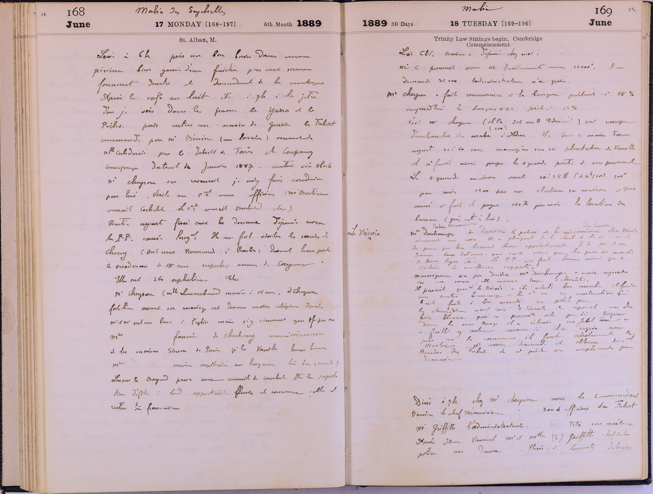 Iles Seychelles - extraits agendas Albert (1889, 1891, 1904)