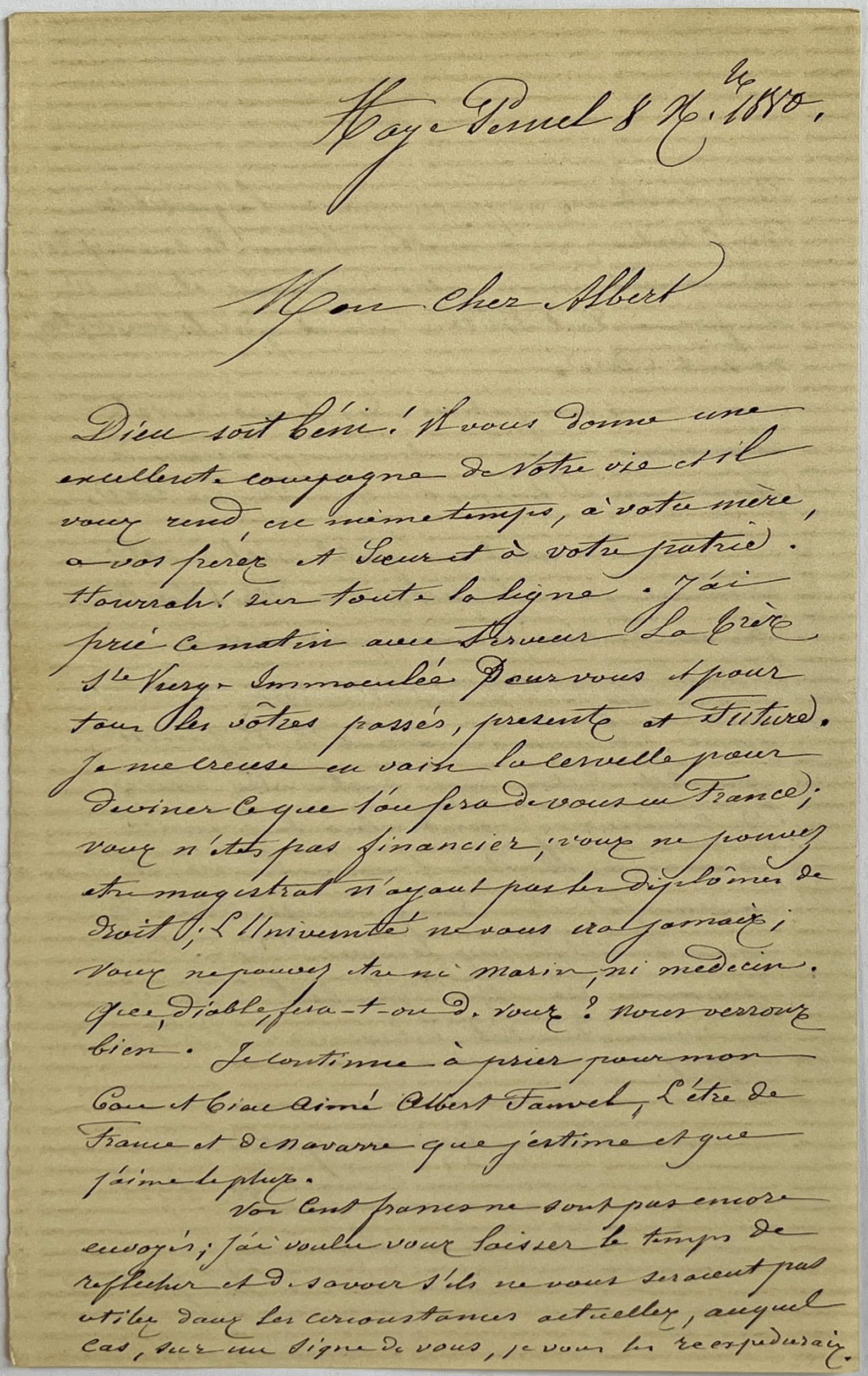 Père Vignon à Albert (8 novembre 1880)