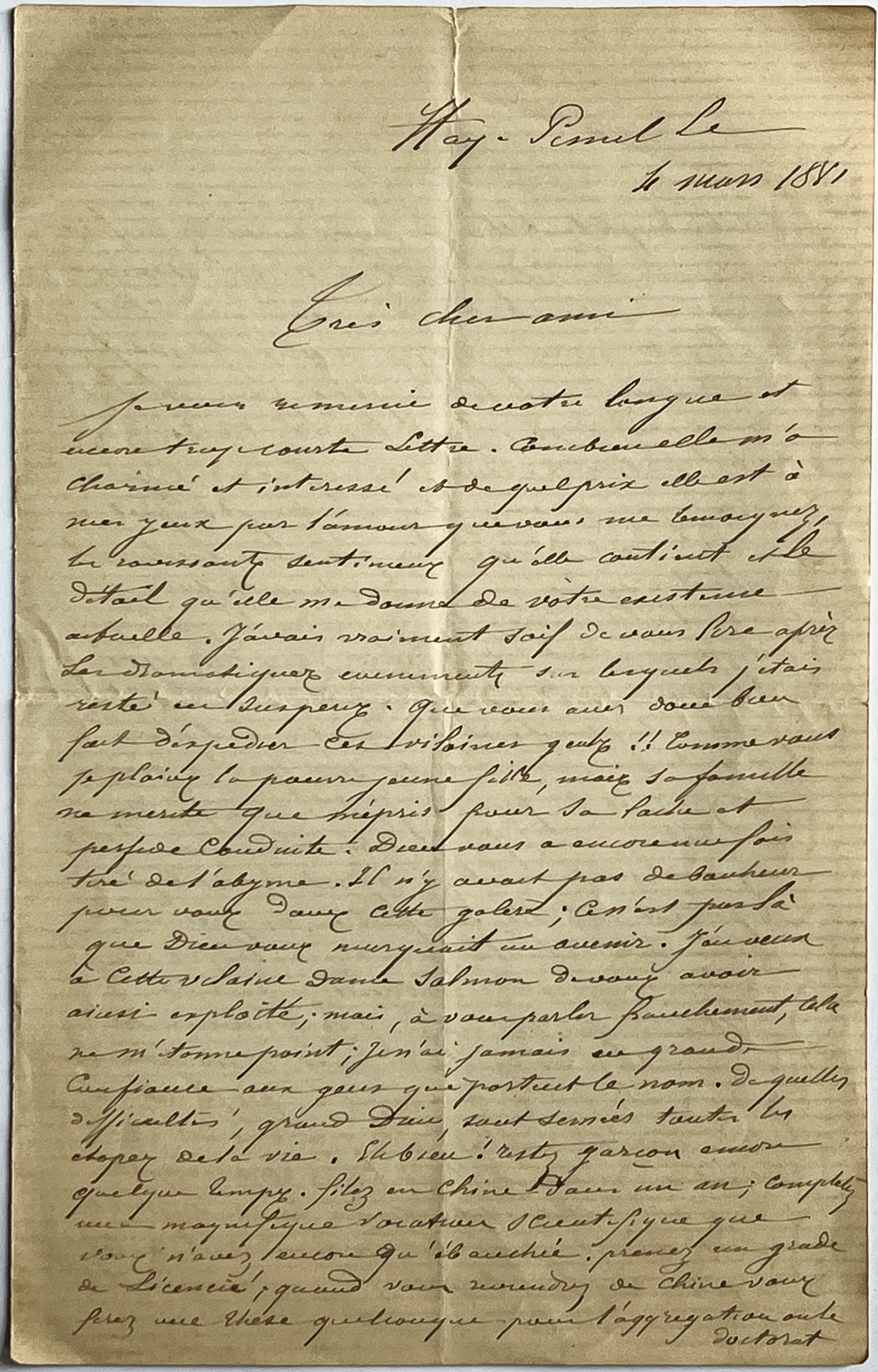 Père Vignon à Albert (4 mars 1881)
